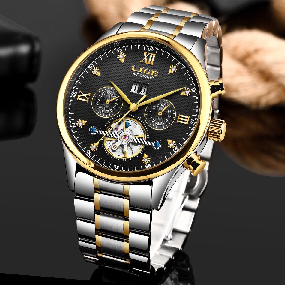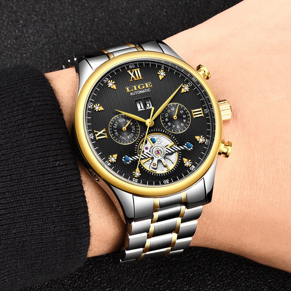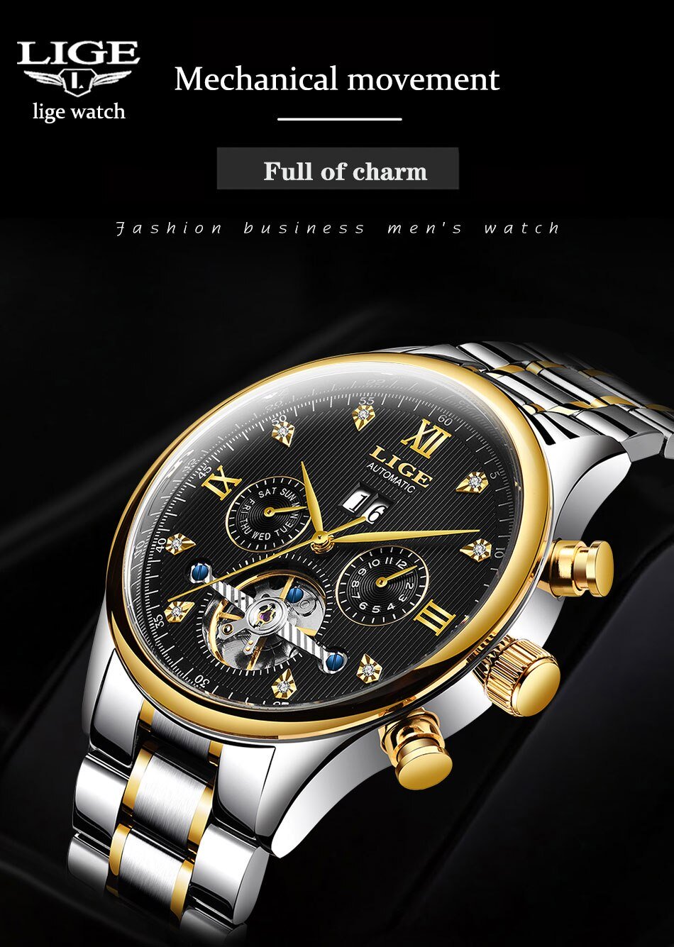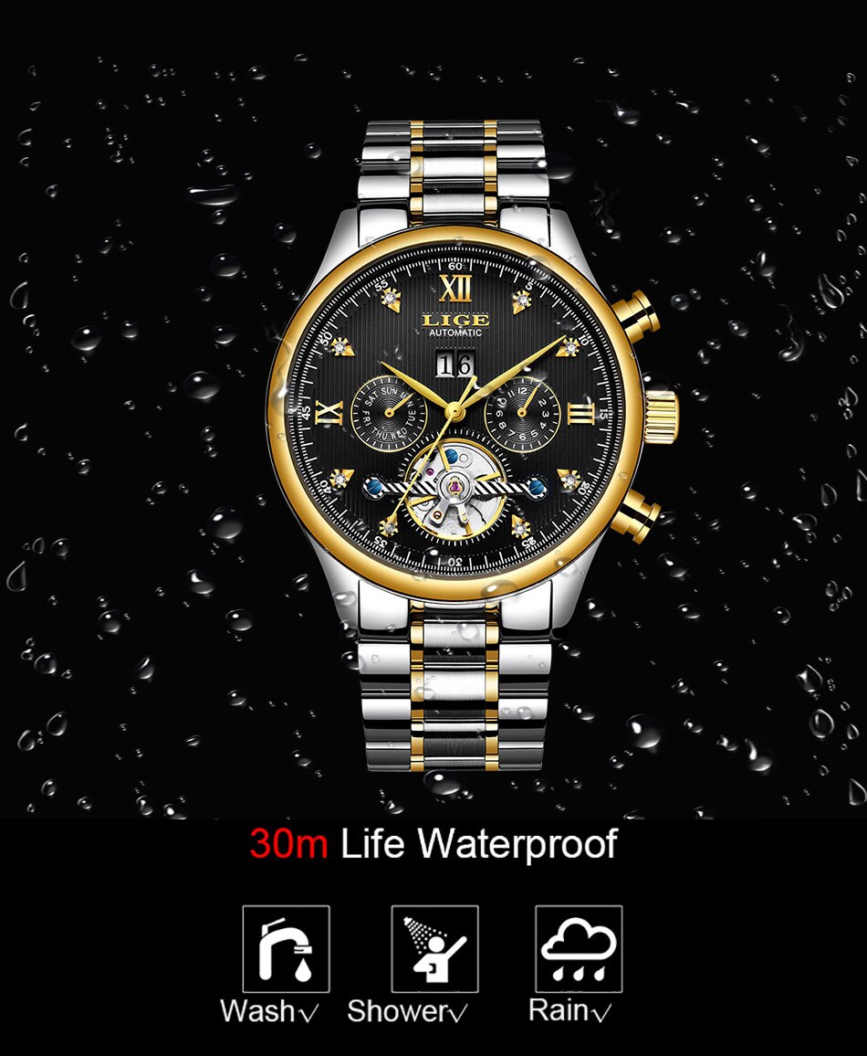 LIGE Watches Luxury Stainless Steel Silver Black LIGE9845