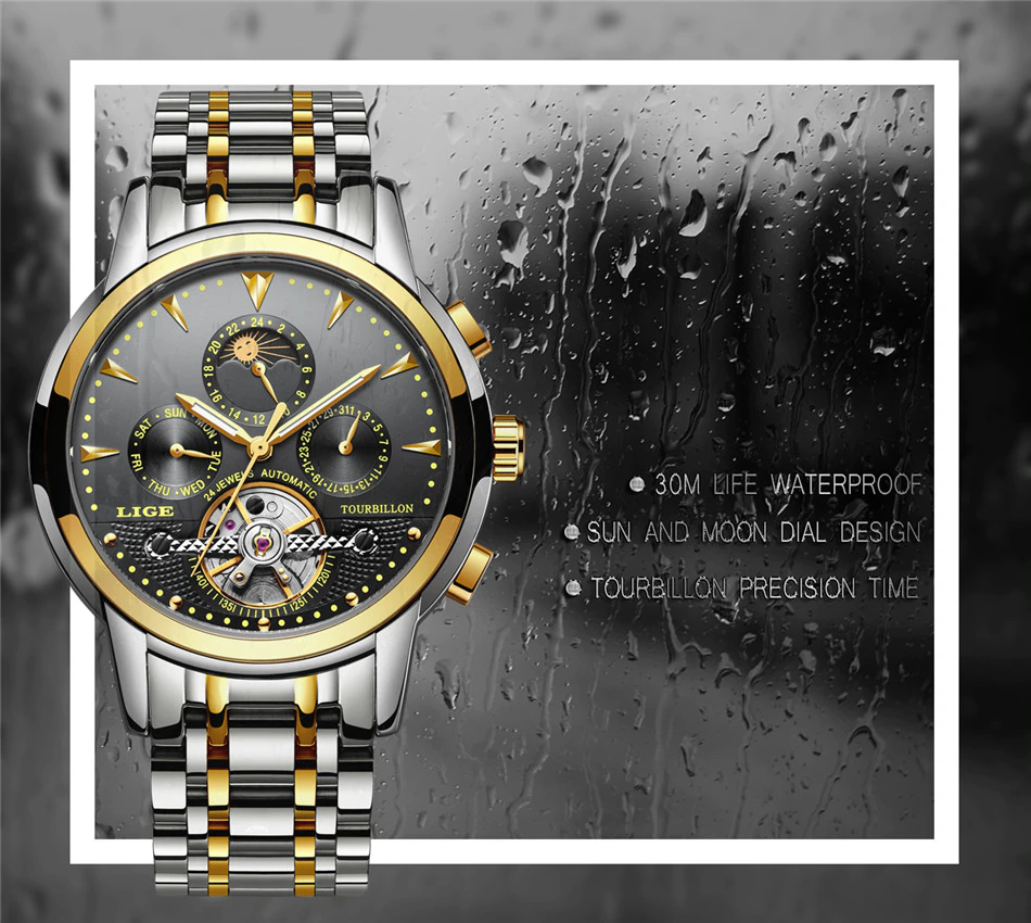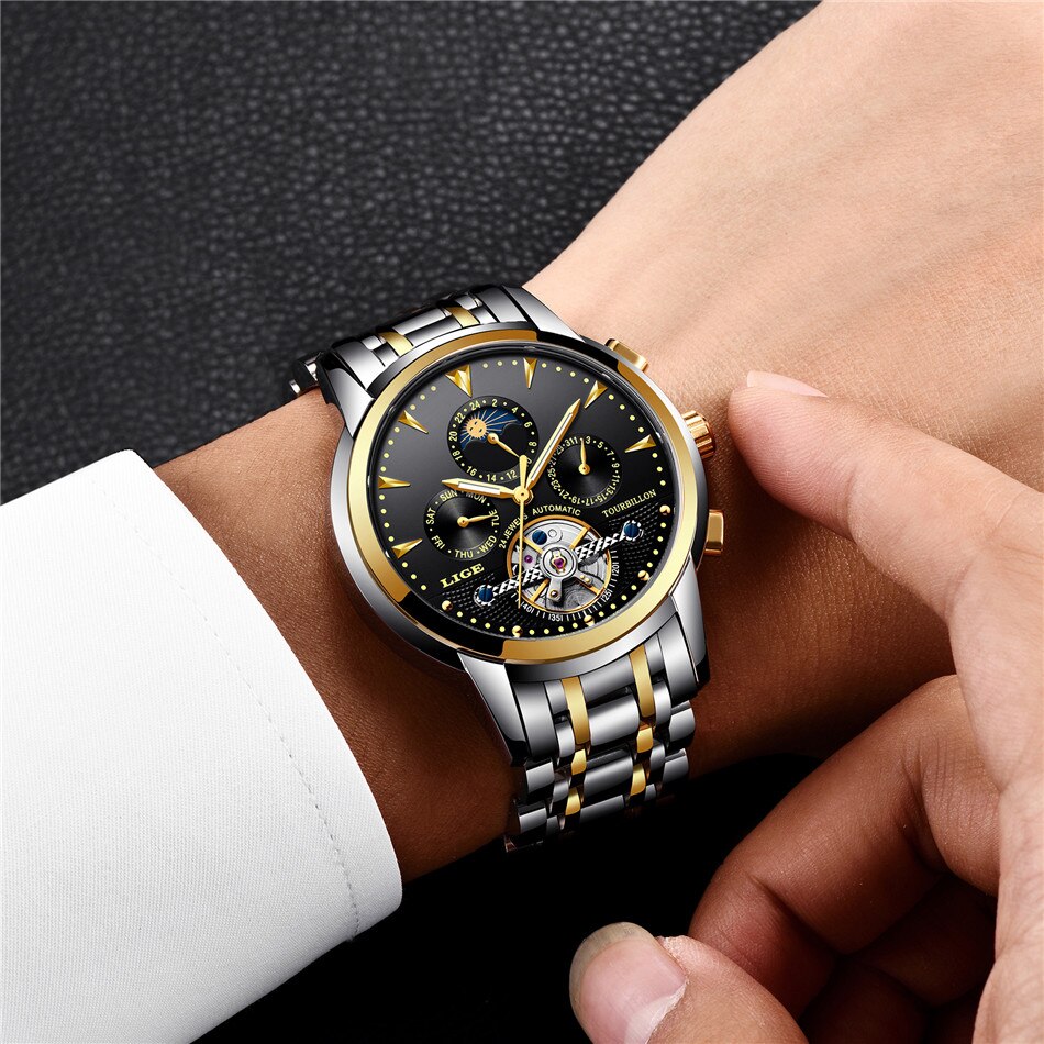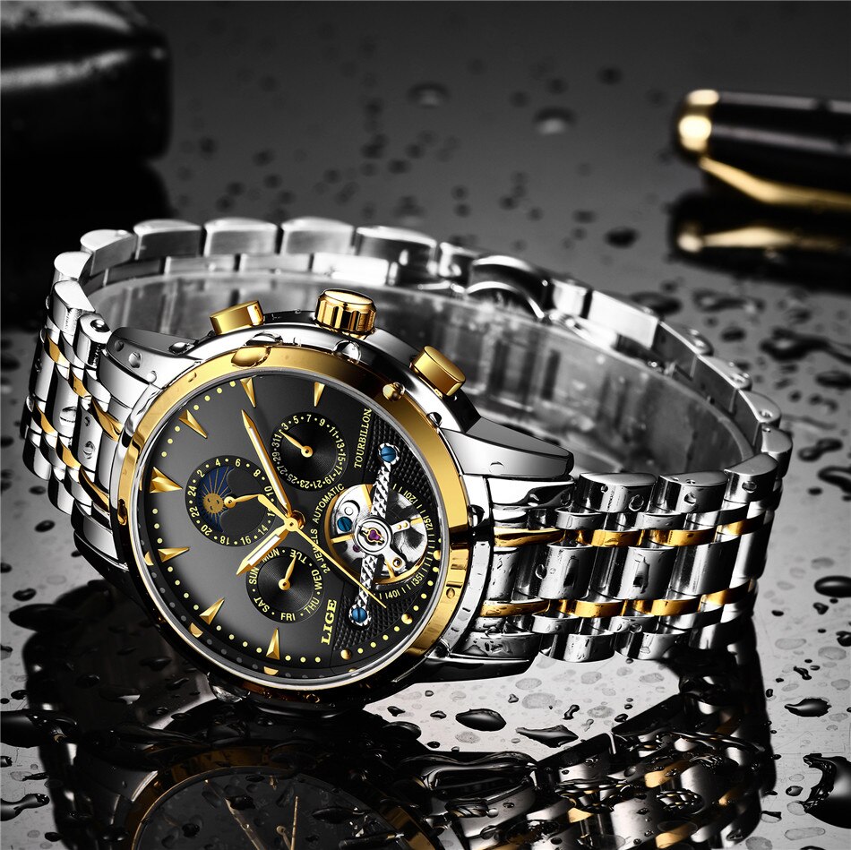 LIGE Watches Luxury Stainless Steel Silver Black LIGE9845