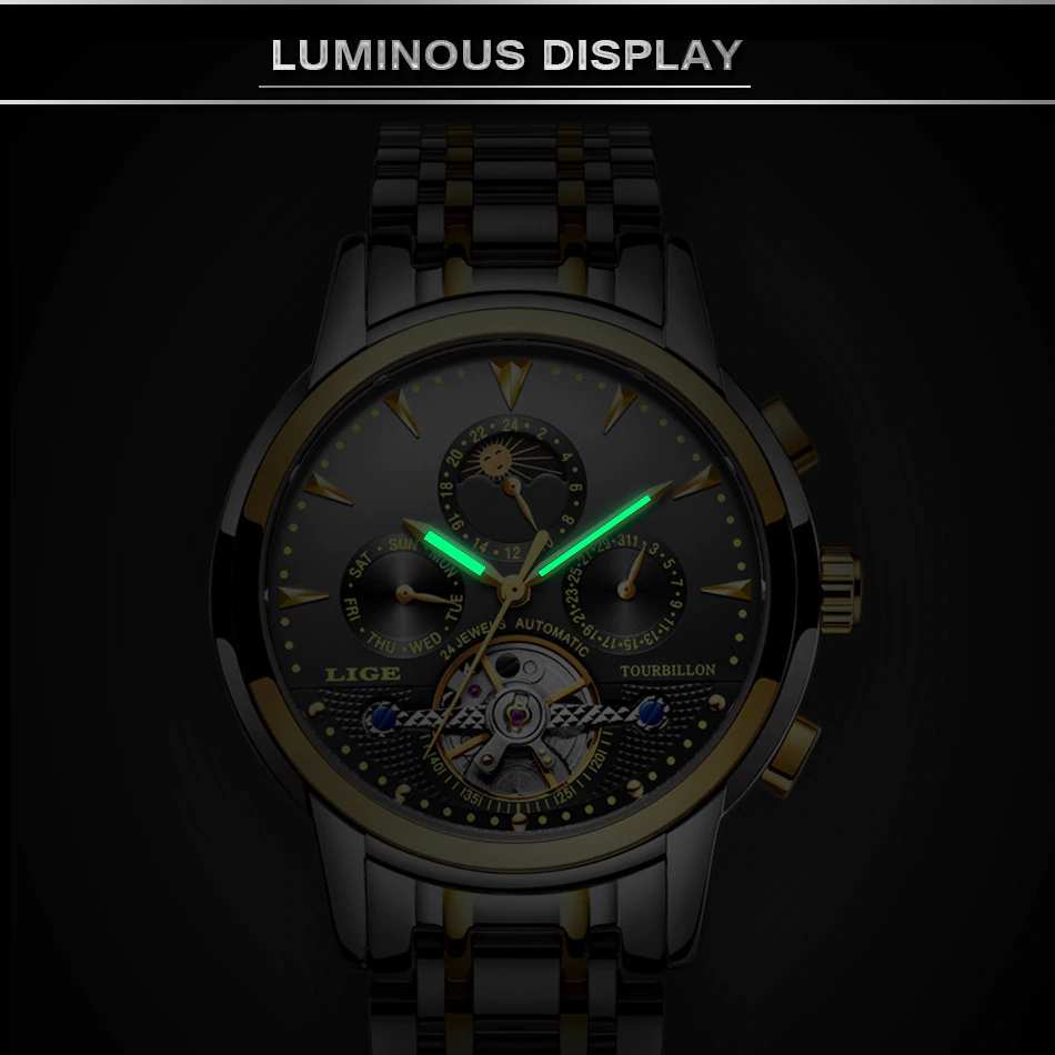 Business Men’s Tourbillon Watch Black Gold LIGE9878 quantity
